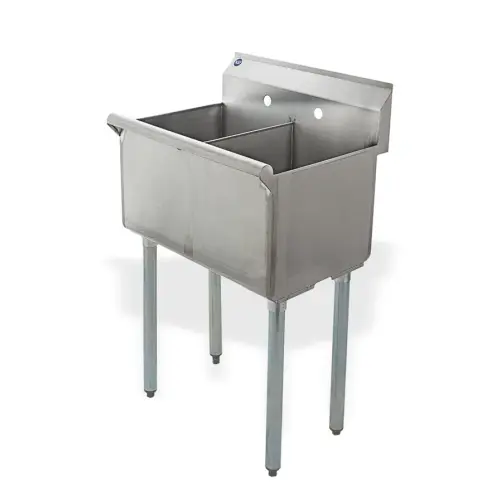 This commercial sink comes with two bowls/compartments, making it perfect for standard washing, rinsing, and sanitizing. This practice helps ensure your dishes, equipment, and glassware are clean and ready for your guests. Each compartment is 13 inches deep, good for tall items. The 18.5 inch width is great for cleaning. This commercial sink is often used in residential laundry rooms as well, providing industrial, sturdy, and commercial quality.
