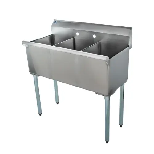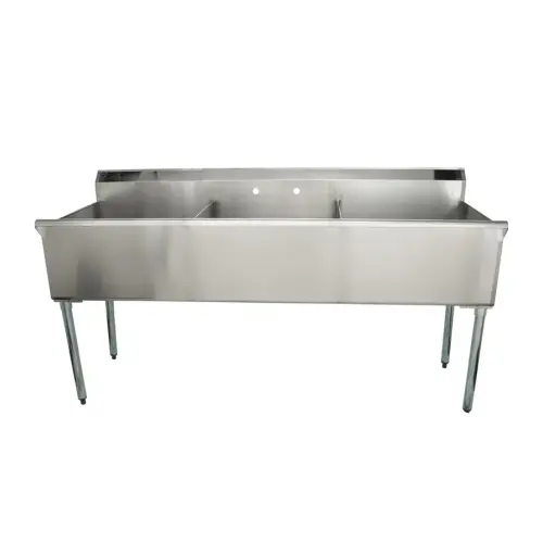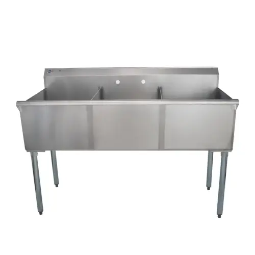 Perfect commercial 3 compartment sink. I bought this sink for my laundry room in the basement of my home. My wife and I wanted a stainless steel commercial sink with three compartments. Before I made the purchase i did some research, and my wife and I narrowed down the 3 most important things. The 1st was the price. We did not want a fancy sink that was too expensive, instead we wanted something affordable that was durable and would last for a while. Having said that, we did not want the cheapest product available, our budget was $400. The 2nd thing was material, the sink had to be stainless steel because we wanted this sink to last and stay in good shape. Last but not least was the time framwe of delivery. We just moved into a new house and we did not want to wait 4-6 weeks as some sellers suggested. This company had this model sink in stock. Overall great quality sink for commercial use.