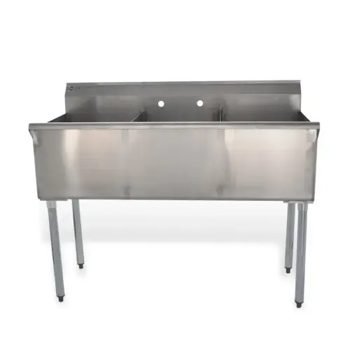 Keep your dishes clean with this 36 inch 3 compartment sink. The Universal BS1512-3 three compartment stainless steel sink presents three separated 13 inch deep bowls for daily dish washing tasks. Made of 18-gauge type 304 stainless steel, this sink provides the durability you need for commercial usage. The compact size and profile is perfect for establishments with limited available space.