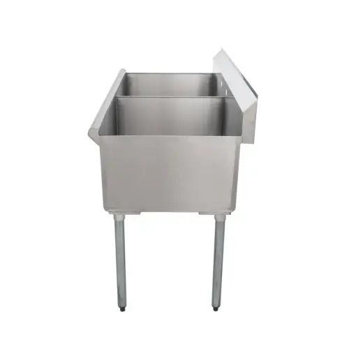 The Universal BS2124-2 two compartment commercial sink includes two separated 13 inch deep bowls. Made using advanced welding techniques, this sink is one piece and seamless. The design is simple and classic. Constructed from 18-gauge type 304 stainless steel.