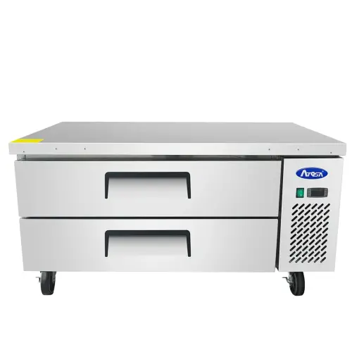The Atosa MGF8452GR - 60" Extended Top Chef Base Refrigerator has been constructed out of sturdy stainless steel, which is also easy to keep clean. You will be able to move this base around your kitchen on swivel casters that are included with purchase. The counter top will marvel you, as it can support up to 706 pounds of equipment. You will find that this is a flexible unit for all of your commercial restaurant needs.