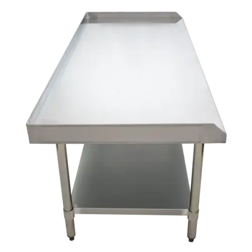 This equipment stand includes 2” side and backsplashes to help prevent supplies and equipment falling from the table.