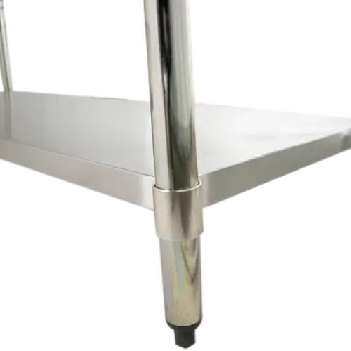The galvanized steel legs are durable, manufactured for heavy duty commercial usage. The legs include adjustable plastic bullet feet which allow you to level the table on uneven floor surfaces for maximum stability and weight capacity.