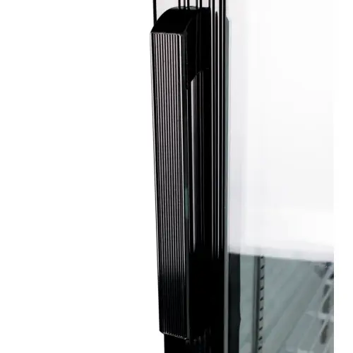 This glass swinging merchandiser includes a top mounted cooling fan, which enables proper, even air distribution. The fan works in conjunction with the foamed polyurethane insulation to maintain cool, even temperatures throughout the unit.