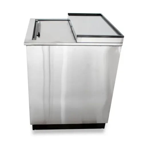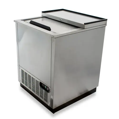 This plate chiller includes a stainless steel top door that slides. The sliding construction allows easy access and the stainless steel material ensures maximum quality.
