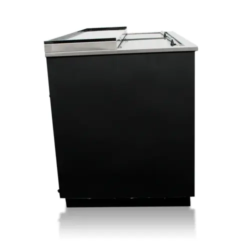 This plate chiller includes a stainless steel top door that slides. The sliding construction allows easy access and the stainless steel material ensures maximum quality.