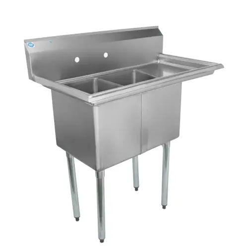 This stainless steel 39" two compartment sink with one drainboard on the right side is rust proof, perfect for substantial use.