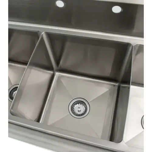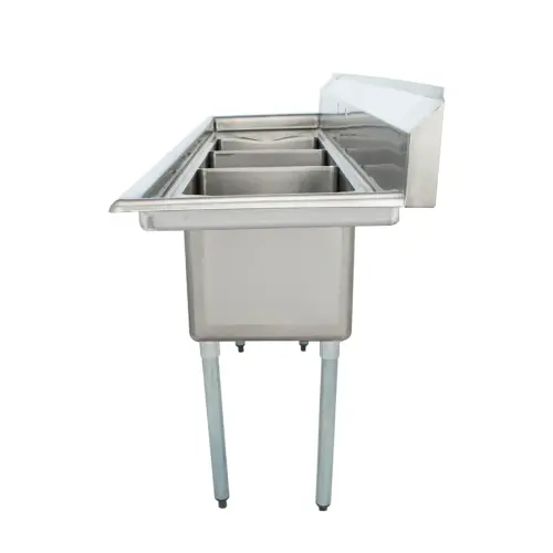 This 75" three compartment sink with drainboards on both the left and right side is great to have in my commercial kitchen. It gives me so much more room to clean my pots etc. Definitely worthwhile for any commercial kitchens.
