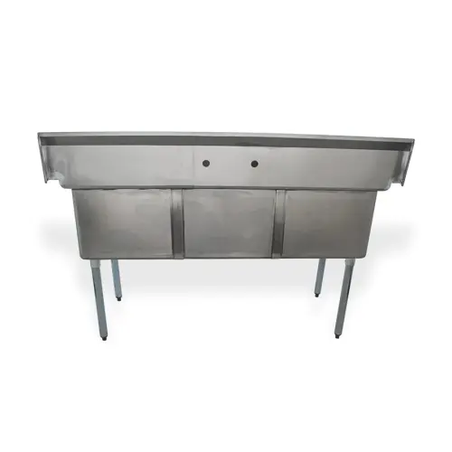 This three compartment sink includes a 2 inch raised and rolled edge which helps prevent overflow and splashes. This design is modern, flush, and keeps a dependent, reliable, and safe for all users.