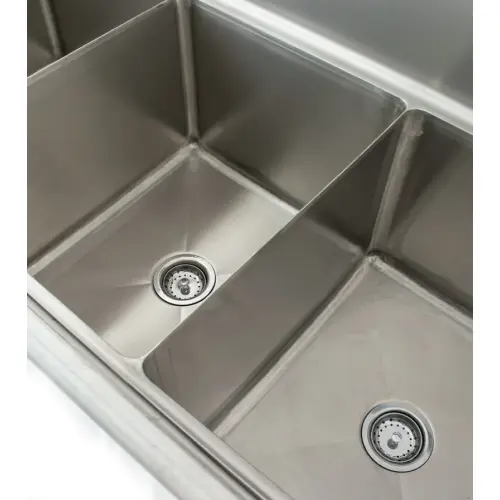 This stainless steel sink comes with three bowls/compartments, great for standard washing, rinsing, and sanitizing. This practice helps ensure your dishes, equipment, and glassware are clean and ready for your guests. Each compartment is 13 inches deep, good for tall items. The 27 inch width is great for establishments with limited space. This commercial sink is often used in residential laundry rooms as well, providing industrial, sturdy, and commercial quality.