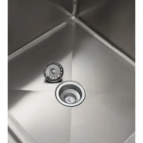 This three compartment commercial sink includes three 3 ½ inch basket strainers, one for each compartment. The basket strainers let water pass while catching all excess particles and waste.
