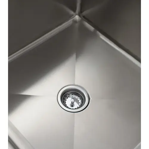 This sink includes rounded corners in the sink bowl to make cleaning easier. This sink also includes angled bends at the bottom of the bowl for better drainage.