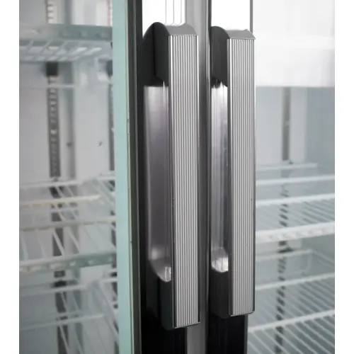 This glass door reach in merchandising freezer has three self-closing swing doors. This feature is great because none of your guests will ever accidentally leave the doors open, which increases the energy efficiency and will ensure your frozen foods stay frozen and fresh. The anti-fog glass ensures a clear view for your guests always.