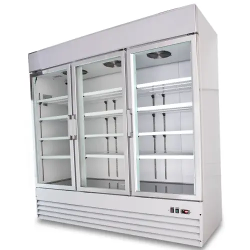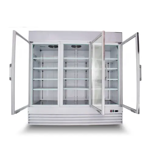 The three door glass reach in Freezer is designed to store and display frozen foods.
