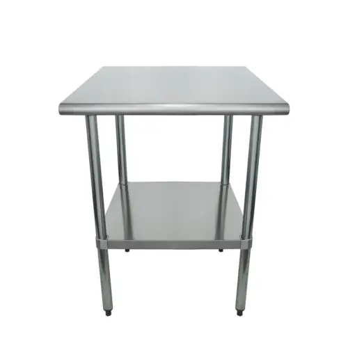This commercial work table is constructed from heavy duty 18 gauge stainless steel. The table top has a high weight capacity of 500 lbs. The stainless steel type is 430SS which is the easiest to clean. The construction is corrosion resistant and with not rust when maintained properly. The design is sleek and modern while keeping its optimal usage foundation. This model complies with food safety regulations.