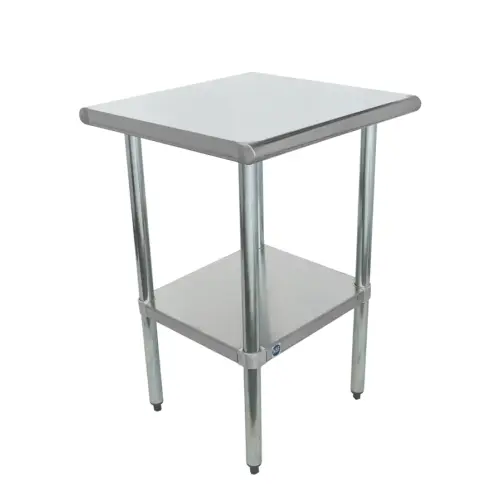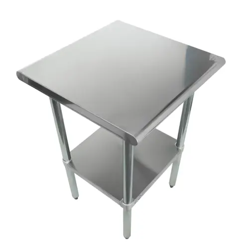 the Universal 24" x 24" stainless steel commercial work table with stainless steel undershelf adds additional work space. Perfect for prepping, chopping, sorting, and assembling. The weight capacity, working height, and easy to clean table top is efficient & effective for organization. Optimize your work flow with this 24 inch solid stainless steel commercial work table.