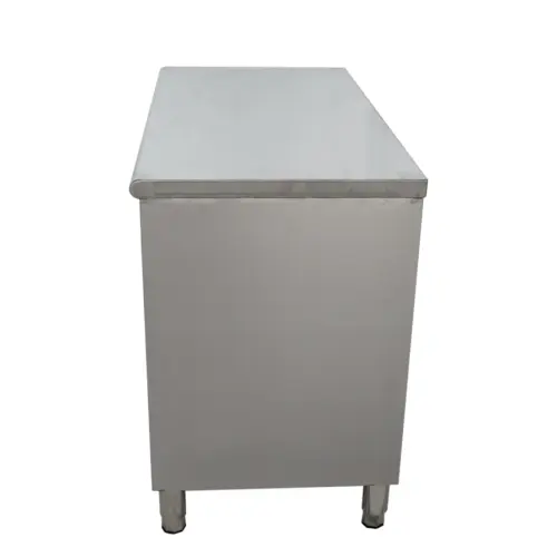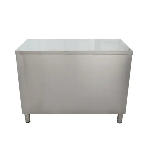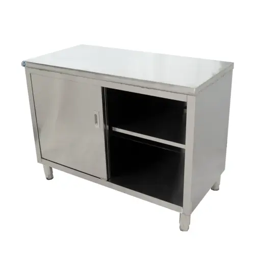 This Universal ST-324-48 - 24" X 48" Stainless Steel Storage Cabinet - Sliding Doors - comes with the option of sliding/swinging doors, or no doors at all. This storage cabinet is ideal for dishes, glasses, detergents and anything else you might wish to put in there. This item can be used as a work top table because of its 36" height. It saves space in any kitchen and cleans easy because of the stainless steel. Comes with 1 shelf for 2 levels of storage.