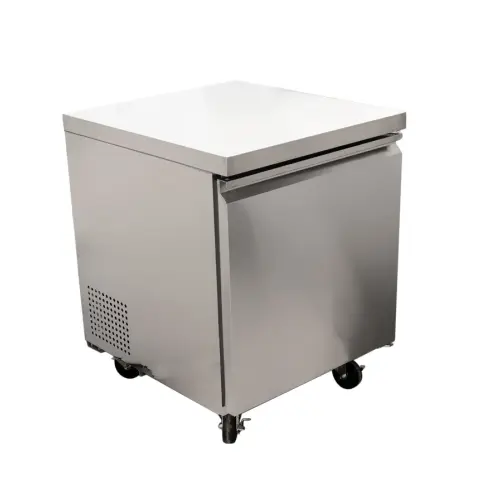 The Universal TUC27R undercounter refrigerator is the answer for additional refrigerated storage. The one door undercounter refrigerator fits under counter tops safely with proper spacing for ventilation. This model provides 6.5 cu. ft. of refrigerated storage. The 27 inch size is compact, great for limited spaces. This undercounter refrigerator includes installed casters for easy maintenance and cleaning.