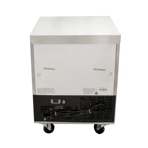 This undercounter refrigerator includes a side and rear-breathing refrigeration system. The 1/4 HP Compressor and top mounted cooling fan distributes temperatures equally throughout the unit. The R-134a refrigerant helps ensure a 32 to 41 degrees Fahrenheit temperature in any environment. The refrigeration system is on an automatic defrost cycle which further ensures temperatures and safety.