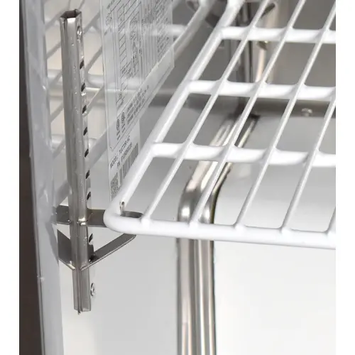 The adjustable plastic coated interior shelf is easy to adjust. This feature helps you organize your undercounter refrigerator to be as efficient as it can be for your operating needs. Each shelf has a 90 lb. weight capacity.