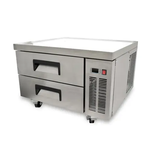 The Universal UCB36 36” 2 drawer refrigerated chef base provides efficient and convenient production in your commercial kitchen. Chef base refrigerators are a convenient place to hold and store foods exactly where they are needed. This refrigerated chef base is a solution for any productive food service business interested in increasing efficiency. Chefs often use refrigerated chef bases to place countertop cooking equipment on top. The chef base refrigerator is used to store ingredients and achieve success. This model chef base is sleek, functional, and modern in design. The Universal refrigerated chef base is a great way to keep your most frequently used ingredients close by.