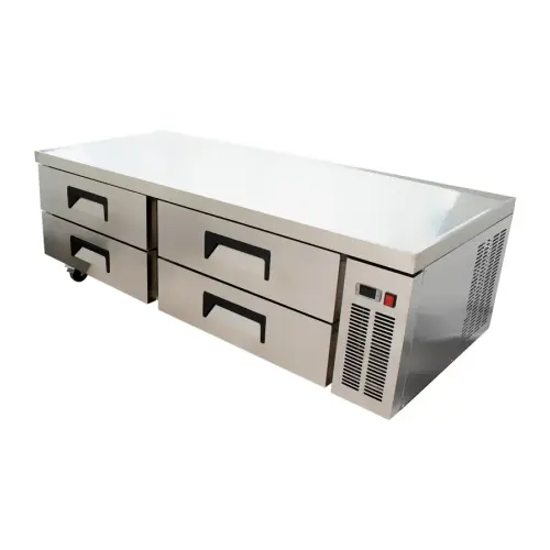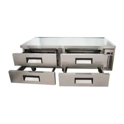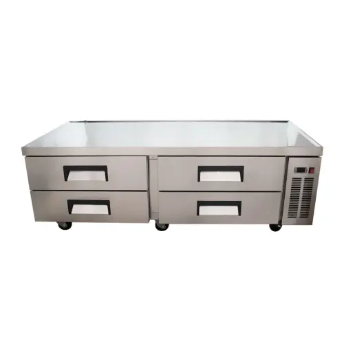 The Universal UCB72 72” 4 drawer refrigerated chef base provides efficient and convenient production in your commercial kitchen. Chef base refrigerators are a convenient place to hold and store foods exactly where they are needed. This refrigerated chef base is a solution for any productive food service business interested in increasing efficiency. Chefs often use refrigerated chef bases to place countertop cooking equipment on top. The chef base refrigerator is used to store ingredients and achieve success. This model chef base is sleek, functional, and modern in design. The Universal refrigerated chef base is a great way to keep your most frequently used ingredients close by.