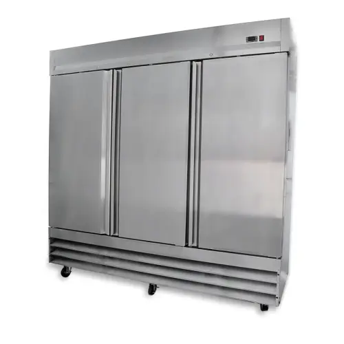 Great three door commercial freezer. It keeps the temperature stable and where it needs to be. It is easy to clean and has a lot of storage space. Would recommend if you are in the market.I am commercial reach in freezer returning customer - this company is very honest.