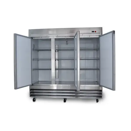 The three door reach in freezer is designed to provide commercial freezer storage.