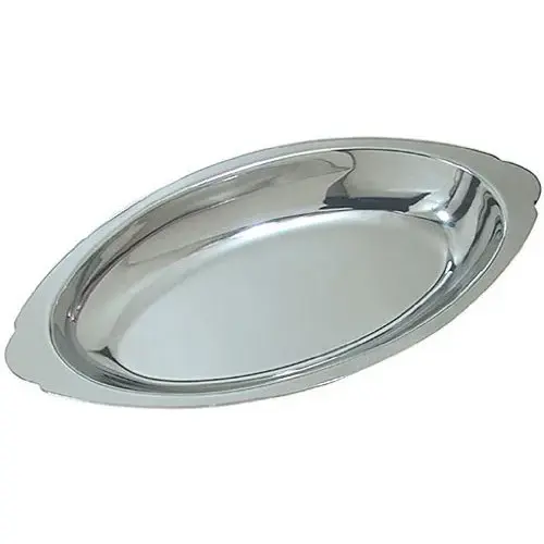 The Update International AGO-20 Au Gratin Platter 10.13" X 1.5" X 5.38" is an important item to keep in every restaurant establishment that serves food. This Au Gratin Platter is made of mirror-polished stainless steel.