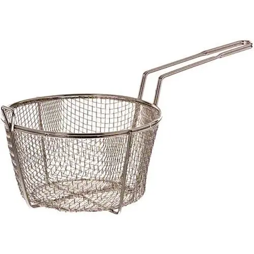The Update International FB-8 - Nickel Plated - Round - Wire Fry Basket - 4.75" x 15.75" x 8.5" is an important item to keep in every restaurant establishment that fries light to heavily-breaded food products. This Fry Basket is nickel-plated to resist corrosion and is easy to clean. This basket have a reinforced base, 0.8-mm medium-wire mesh with a welded handle and heavy duty frame.