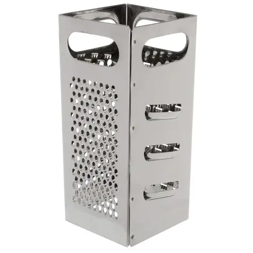 The Update International GR-449 - Stainless Steel - 4-Sided Cheese Grater - 8.75" x 4.25" x 4.25" is an important item to keep in every restaurant establishment that needs to grate cheese. This Cheese Grater has a box design and used for any number of culinary endeavors from adding parmesan to pasta topping a burrito with delicious cheddar cheese.