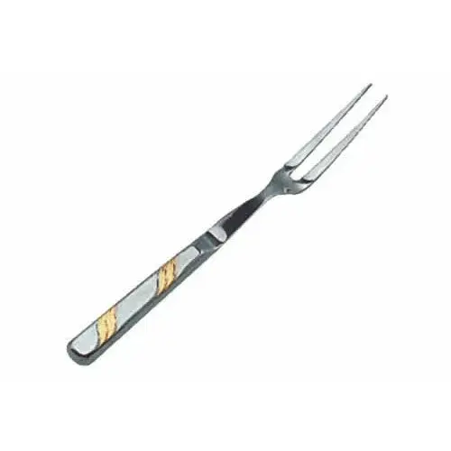 The Update International HBG-8/PH - Gold Accented - Pot Fork is an important item to keep in every restaurant establishment that serves fruit salad. This Pot Fork features an elegant design and is made of heavy-gauge 18/0 mirror-polished Stainless Steel. The hollow handle provides a comfortable, properly-balanced grip. This spoon is 12.5" in length.