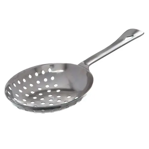 The Update International JST-6 - Stainless Steel - Julep Strainer - 0.25" x 3" x 6.25" is an important item to keep in every restaurant establishment that needs to strain spearmint bruised or muddled leaves from cocktail. This Stainless Steel Julep strainer is made of stainless steel.