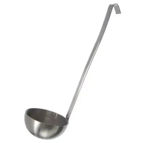 The Update International L-320 - Heavy Duty - 2-Piece Stainless Steel - Ladle - 6" x 6" x 19.38" is an important item to keep in every restaurant establishment that is used in nearly every part of the dining process from adding liquid ingredients to a saucepan topping an entre with a signature sauce. This Ladle is a sturdy utensil that can easily hold up to a commercial kitchen's daily grind. The ladle bowl is riveted to the handle making it suitable for heavy-duty use.