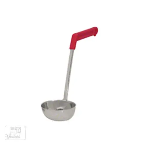 The Update International LOV-60ECH - Stainless Steel - Oval Serving Ladle - 3.25" x 4.44" x 13.53" is an important item to keep in every restaurant establishment that serves soups, gravies, dressings and other liquid-based foods and condiments. This Stainless Steel Oval Ladle has red plastic handles are easy to get a hold of. Made from durable stainless steel, this ladle is sure to be a mainstay of your buffet lines. The ladle is also easy to clean.