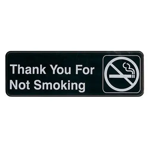 The Update International S39-18BK Sign Board, Thank You for Not Smoking, White on Black 9" X 0.06" X 3" is an important item to keep in every restaurant establishment that requires a sign that clearly marks areas in which smoking is not permissible.