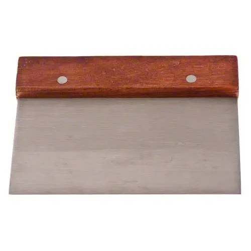 The Update International WDS-36 Stainless Steel Dough Scraper with Wood Handle 6" X 0.5" X 4.5" is an important item to keep in every restaurant establishment that needs to quickly and economically remove dough from the work surface and from bowls. This dough scraper blade is made of Stainless Steel.