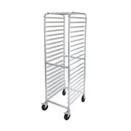 Whether you are in the food service industry is baking, catering or a full-service restaurant, an aluminum pan rack is an invaluable, light-weight method for storing and food products. This Winco 20 Tier Aluminum Rack with Brakes [ALRK-20BK] is a durable yet easily maneuvered pan rack. Five inch casters are included with this model which features all-aluminum construction with tray slides welded to vertical posts. Holds up to 20 pans without taking up much room. Perfect for walk-in freezers or catering. Overall this is a quality product with an unbeatable price.