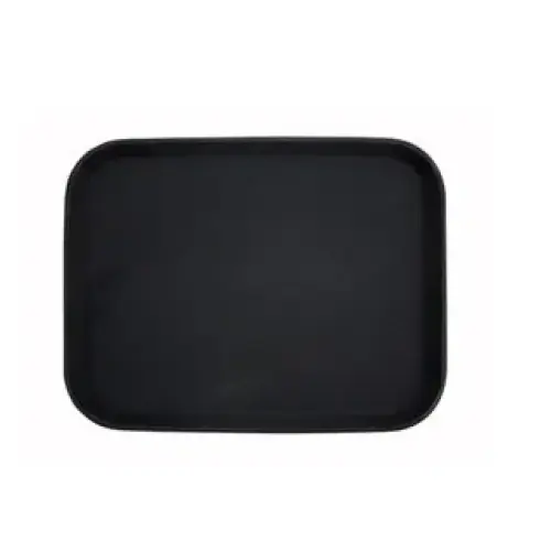 This 14" x 14" Round Fiberglass Food-Service Tray (Winco TRHG-1400) is made from fiberglass. The material is ribbed for an "easy hold" feature. This material is heavy duty and light weight. This item is durable and built with longevity in mind. The stain and scratch-resistant material proves that. These items are stackable, and are mainly used in cafeterias, hotel service, hospitals, schools, and universities. When cleaning this item, you can rinse or use the dishwasher, as this item it deemed dishwasher safe.