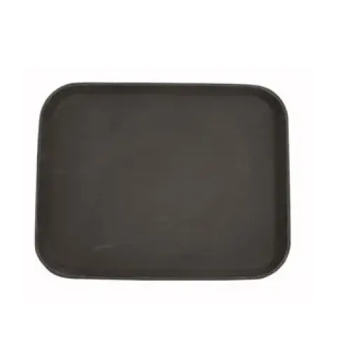 This 27" x 22" Oval Fiberglass Food-Service Tray (Winco TRHG-2722) is made from fiberglass. The material is ribbed for an "easy hold" feature. This material is heavy duty and light weight. This item is durable and built with longevity in mind. The stain and scratch-resistant material proves that. These items are stackable, and are mainly used in cafeterias, hotel service, hospitals, schools, and universities. When cleaning this item, you can rinse or use the dishwasher, as this item it deemed dishwasher safe.